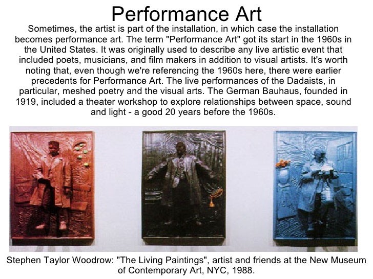 The Renaissance was a cultural movement that profoundly affected European intellectual life in the 1400’s. Installation Art Installation Art describes an artistic genre of three-dimensional works that are art came to prominence in the 1970’s. ... Fetch Here